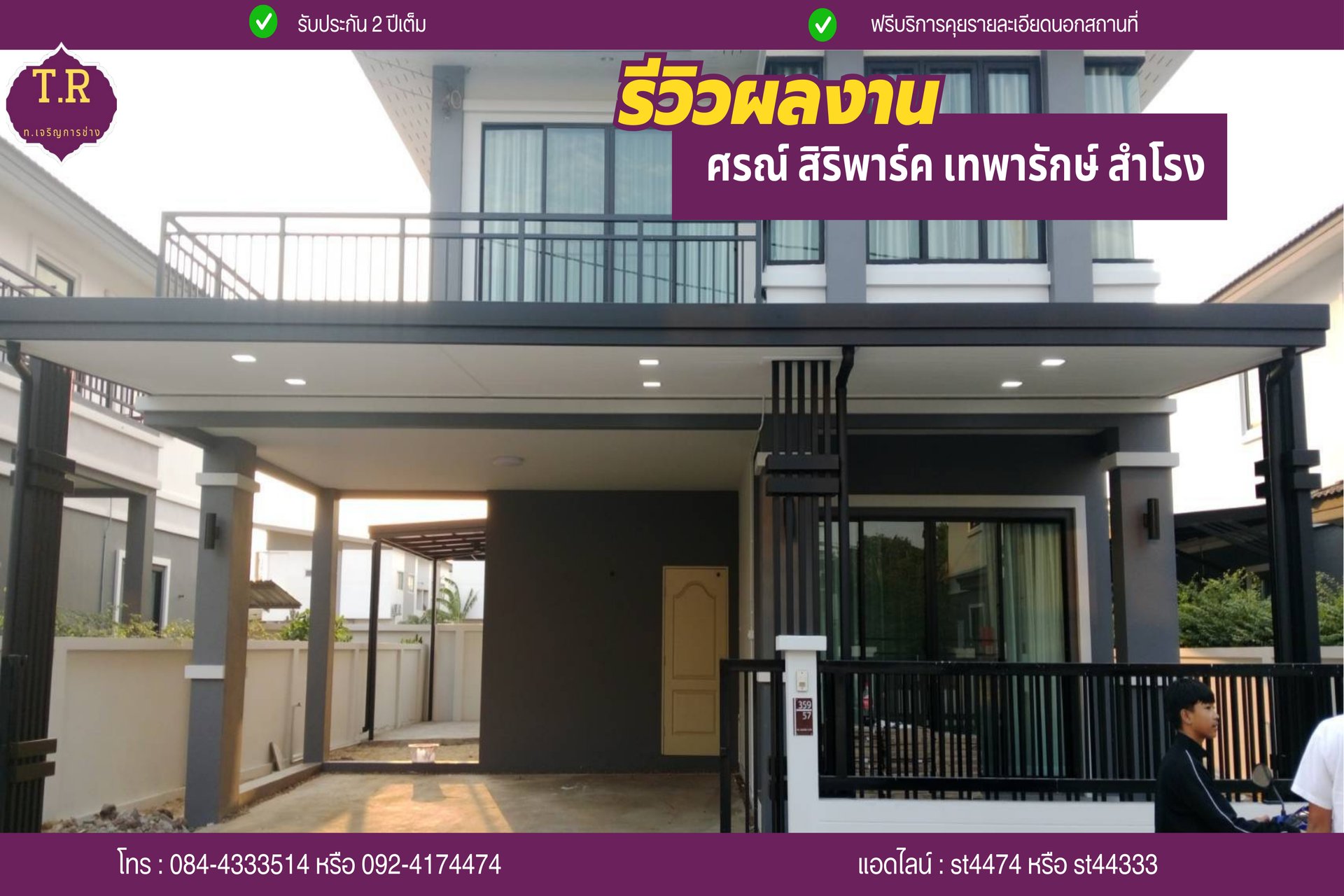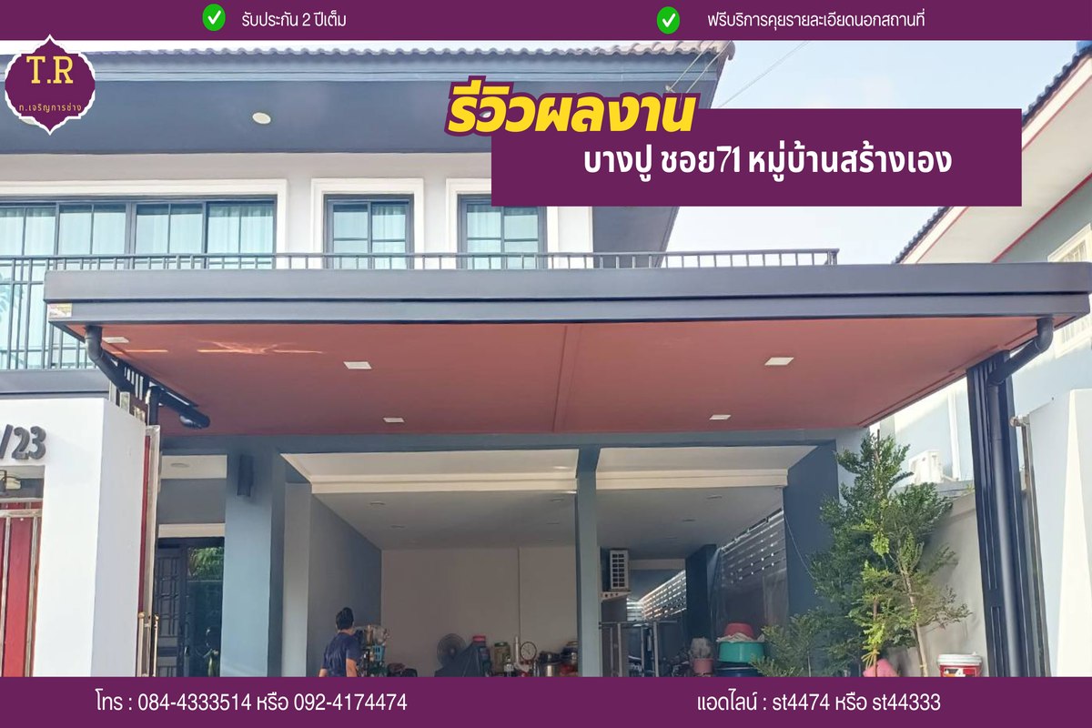 รับออกแบบต่อเติมโครงหลังคาโรงจอดรถ-โครงกันสาด สไตล์โมเดิร์น-ตีฝ้าระแนง-ฝ้ายิปซั่ม-ฝ้าเมทัลชีท
